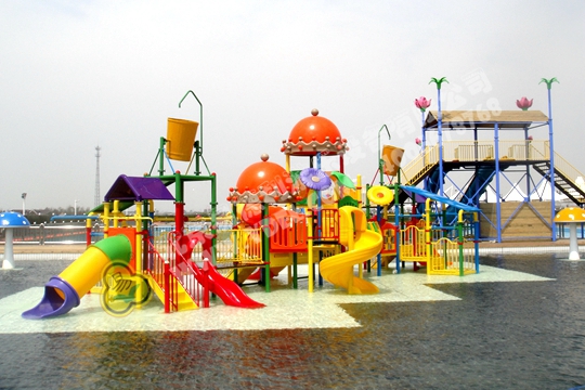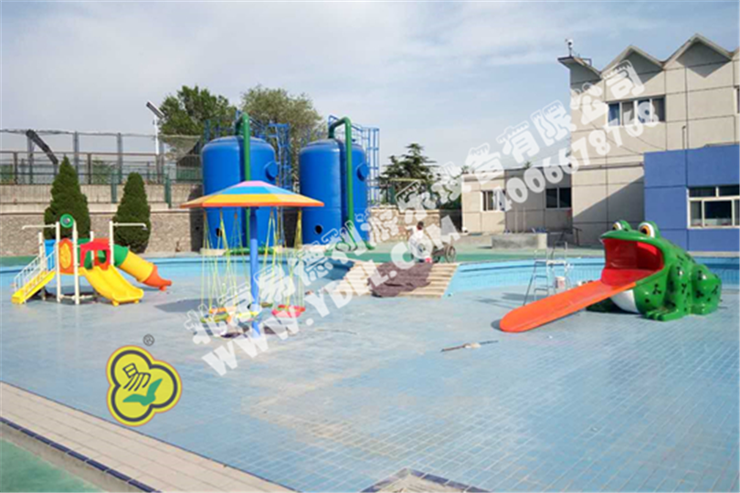 吐著大紅舌頭的青蛙滑梯小品,形象栩栩如生,小小水滑梯,簡單卻也是一種樂趣,水秋千,在水里也能享受....