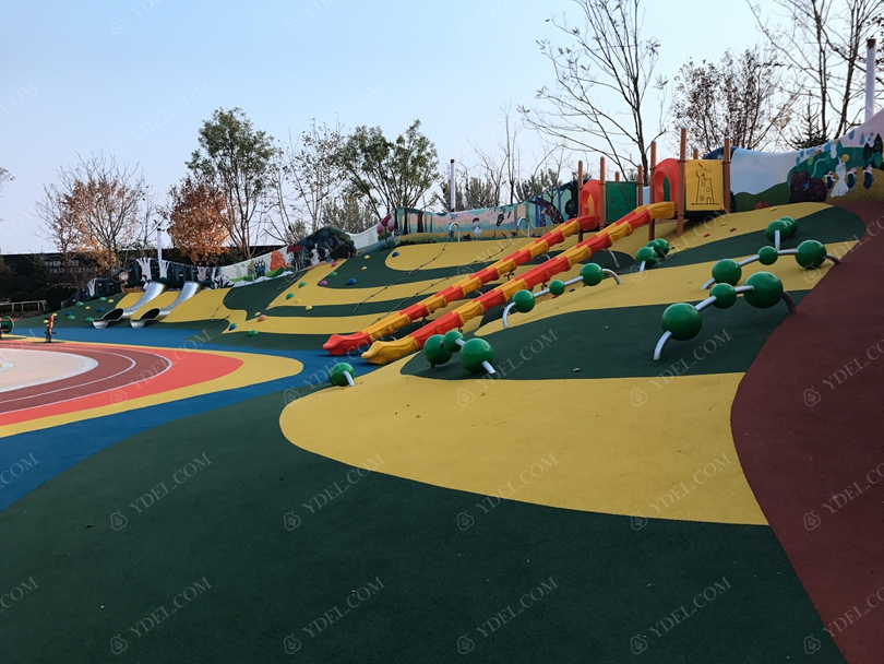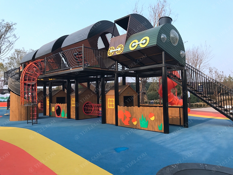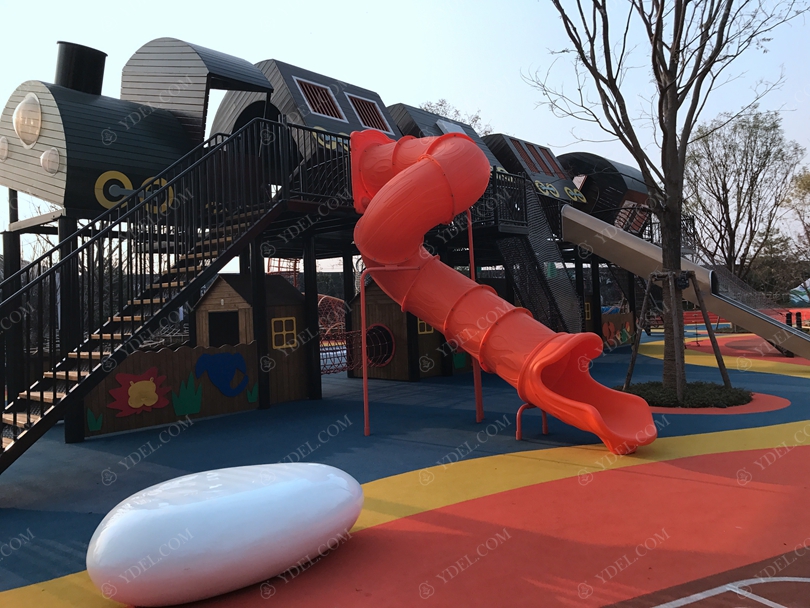 新穎的火車(chē)造型滑梯富含多游樂(lè)功能,微地形攀爬設(shè)施,創(chuàng)意造型滑梯等
